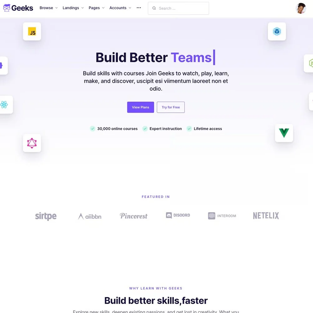 Geeks is a modern and feature-rich Online Learning Marketplace WordPress Theme designed for educational institutions, instructors, and e-learning startups. Built with compatibility for LearnDash, Tutor LMS, and WooCommerce, Geeks offers everything you need to create, manage, and sell online courses effectively.
