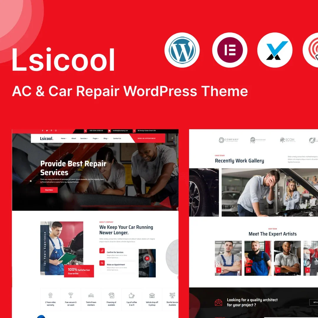 Lsicool is a clean and elegant AC & Car Repair WordPress Theme. It was developed according to the latest technologies and can perfectly fit any corporate, e-commerce, business, agency, private, or promotional website. It could be a perfect choice for AC and CAR repair companies as it provides a contemporary design reflecting the nature of their business.